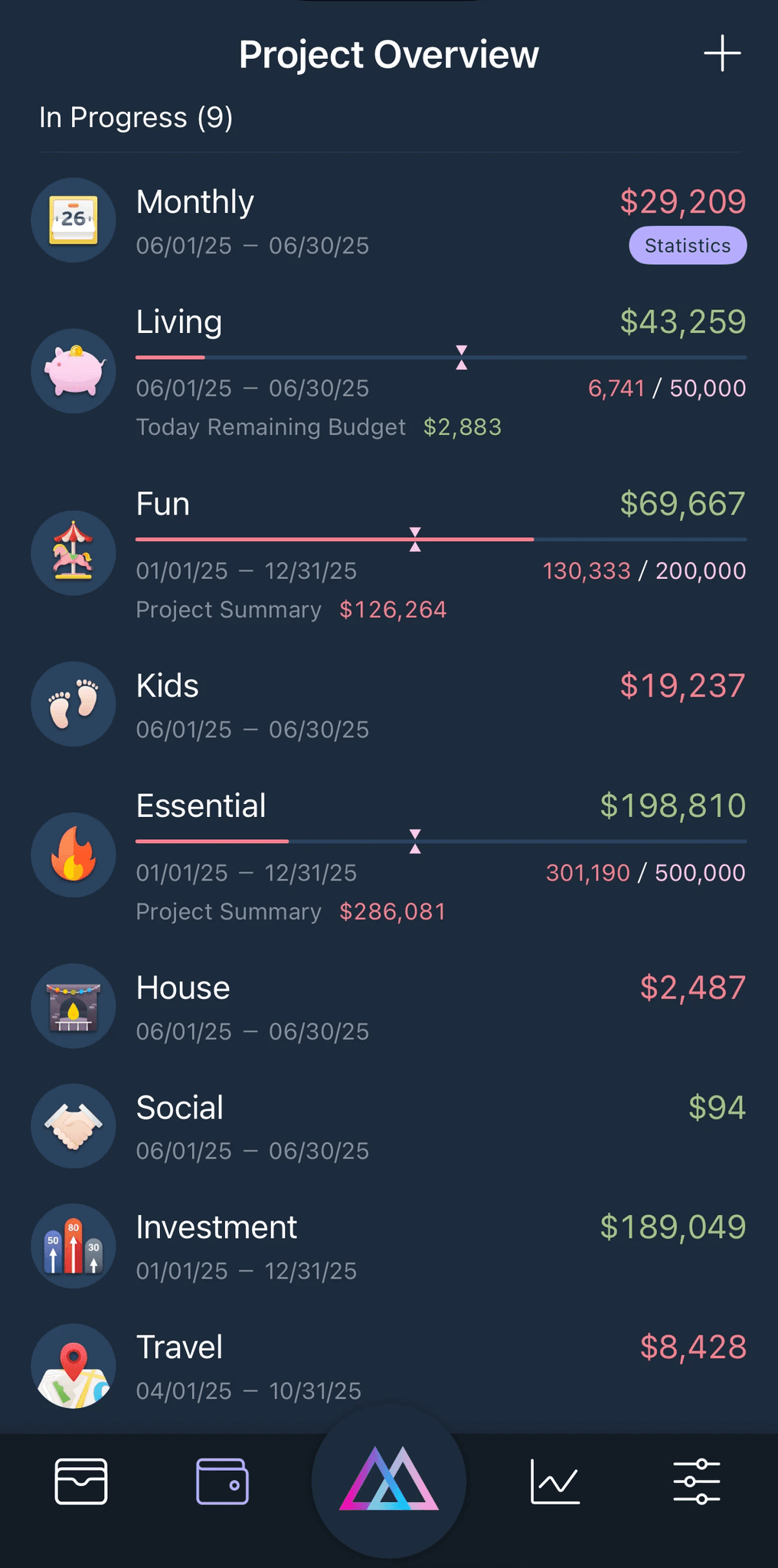 You can customize accounts, credit cards, projects, reports, and more. Each item allows detailed configuration—like setting which account automatically pays your credit card bills and on what date. The developer also listens to feedback and makes improvements. This is truly my favorite app!